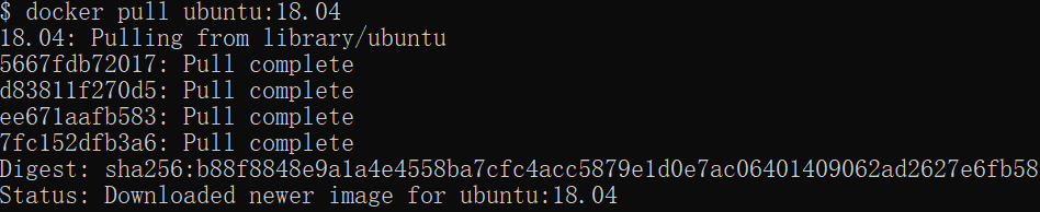 [그림1] docker-pull 이미지를 받으면 [그림1]과 같이 다운로드가 되는데, 보면 하나가 다운로드 되는 것이 아니라 여러 파일이 다운로드 되는 것을 볼 수 있는데 이게 앞에서 말했던 레이어(Layer)이다. 우분투 이미지는 4개의 레이어로 구성되어 있는 것이다. 받아진 이미지를 분석해보고 싶다면 "docker inspect ubuntu:18.04" 와 같이 입력하면 해당 이미지가 어떻게 구성되어있는지 결과를 볼 수 있다.