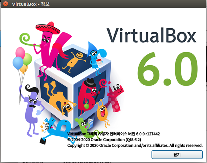 [vbox-check] vbox가 정상적으로 실행되었다면 [도움말 - VirtualBox 정보]를 클릭했을 때 위와같은 그림이 뜬다. (일반 Release 버전으로 설치했을 경우 알파벳 캐릭터들이 존재하지 않는다.)