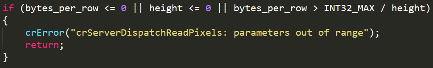 - Integer Overflow in crServerDispatchReadPixels lead to heap Overflow