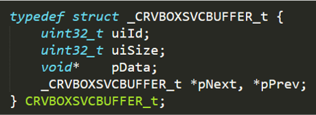 CRVBOXSVCBUFFER_t 위에서 봤던 crMessage 들을 처리하기 위한 버퍼링에 사용되는 이중연결리스트 구조체이다. Guest OS에서 crMessage를 만들어서 Host OS의 chromium 서버로 보내면 서버에서는 CRVBOXSVCBUFFER_t 구조체를 heap에 할당하고 이 구조체를 이용해서 crMessage 를 관리한다. 크기는 0x20byte이며 uiId를 이용해서 구조체에 접근하며 uiSize는 전송된 crMessage 데이터의 크기가 들어가며 crMessage의 데이터는 새로 할당된 heap 공간에 저장되고 pData에 그 주소값이 저장된다.